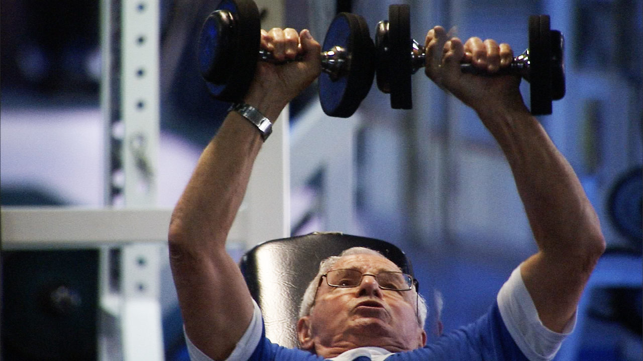A biographical portrait of the oldest competing body builder in the world.